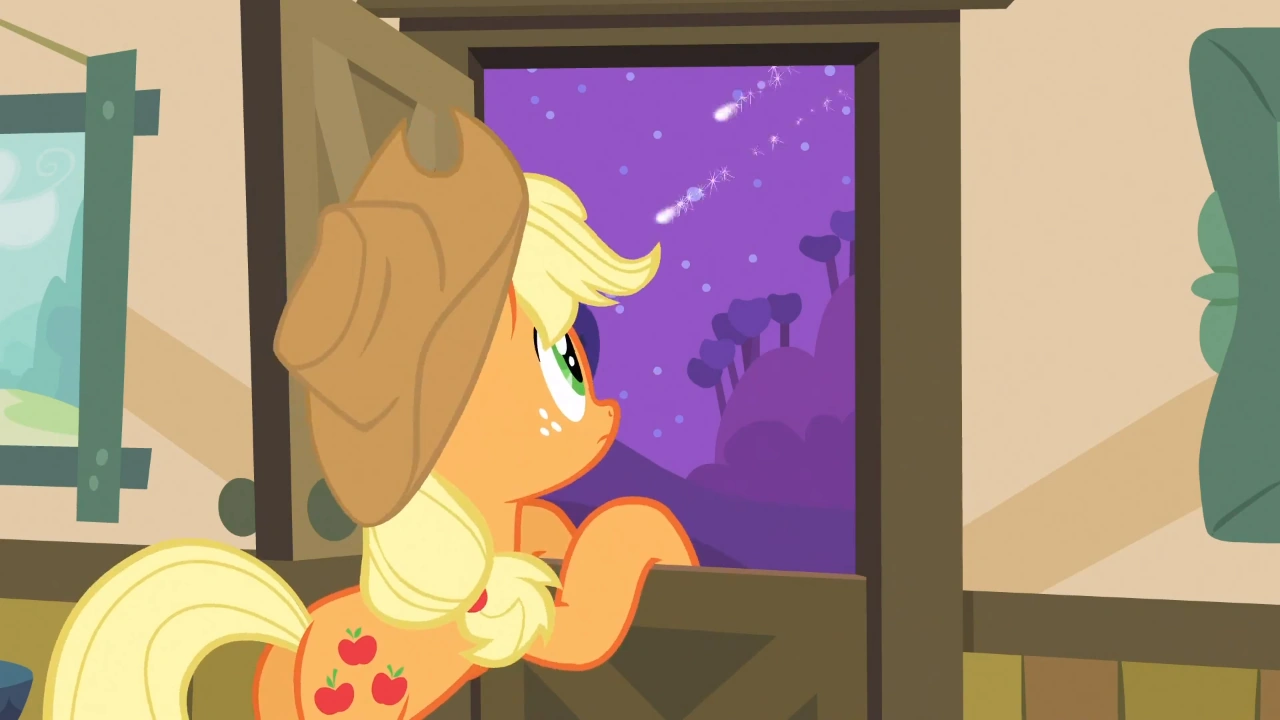 애플잭은 조화의 원소 중 정직을 담당하는 포니이다. '우정은 마법, 2부' 에피소드에서 나이트메어 문에 의해 산이 무너져 트와일라잇 일행은 아래로 떨어지게 된다. 다른 친구들은 모두 가까스로 안전하게 내려 오지만, 트와일라잇은 혼자 남아 절벽에 매달린다. 애플잭은 트와일라잇이 절벽에 떨어지지 않도록 발굽을 잡아 주지만, 버티기 힘들어지자 트와일라잇에게 발굽을 놓으라고 말한다. 트와일라잇이 미쳤냐며 애플잭에게 화를 내자 애플잭은 다치지 않을 것이라며 트와일라잇을 설득한다.