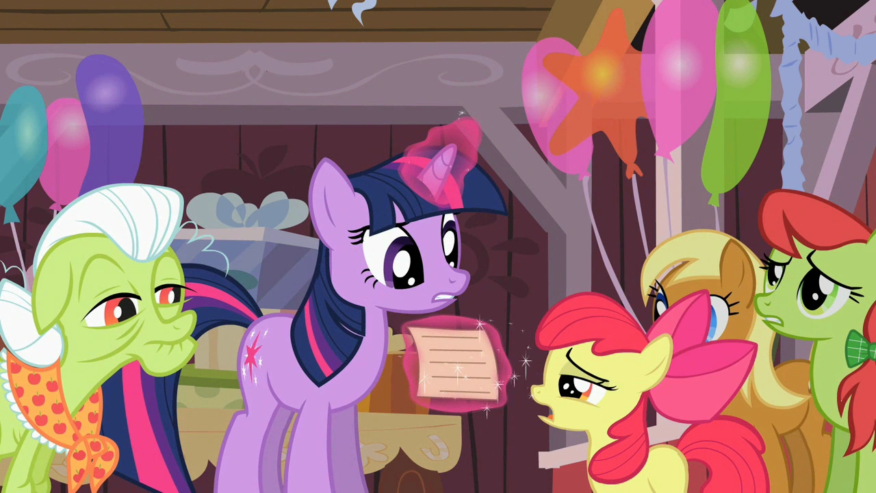 트와일라잇은 우체부 포니로부터 편지를 받아 모두에게 편지 내용을 읽어준다. 편지는 애플잭으로부터 온 것이었고, 안에는 "다시는 포니빌로 돌아가지 않는다"는 내용이 적혀 있었다. 그 말을 들은 친구들과 애플잭의 가족들은 경악하며 애플잭에게 무슨 일이 생긴 게 아니냐며 걱정한다. 잠시 후, 트와일라잇과 친구들은 온 이퀘스트리아를 뒤져서라도 애플잭을 찾아 오겠다고 모두에게 약속한다.