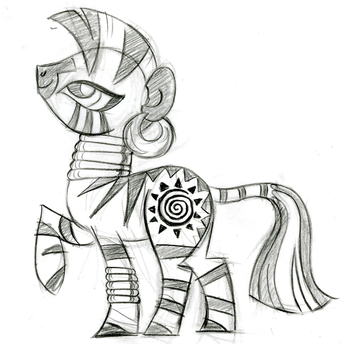 로렌 파우스트는 제코라를 처음 디자인할 때 현명하고, 다른 포니들의 멘토가 되는 얼룩말로 디자인하고자 하였다. 본래 제코라의 이름은 '샤먼'이 될 예정이었지만, 범무부에서 허가가 내려지지 않아 이름을 바꾸게 되었다. 현재 이름인 '제코라'는 동아프리카의 오로모족이 얼룩말을 부르는 명칭이다.