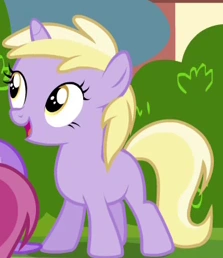 Dinky Doo to jednorożec. Klaczka ma jasno fioletową sierść i blond grzywę. Jej oczy są żółte. Dinky nie posiada jeszcze swojego znaczka.