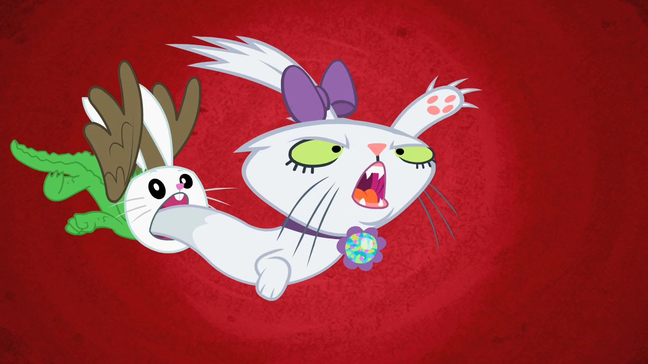 - Fluttershy: (podniecona) Och, naprawdę chcesz mieć zwierzątko, serio? Bo ja mam w domu tyle różnych stworzeń! Och, na pewno coś sobie znajdziesz, one Cię pokochają. Nie ma lepszego przyjaciela niż zwierzak.