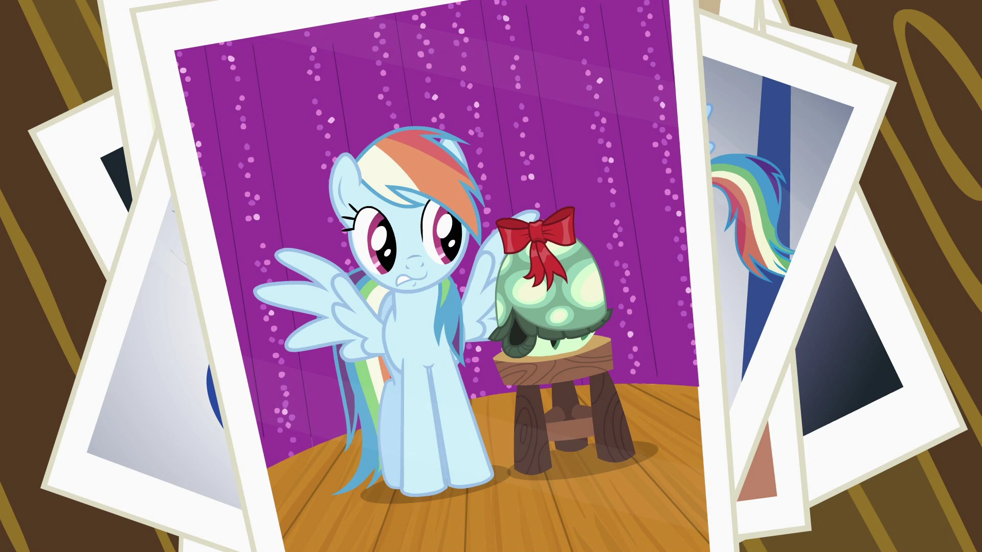 - Rainbow Dash: Żartujesz, Fluttershy. Żółw? Po coś mi go przyprowadziła?
