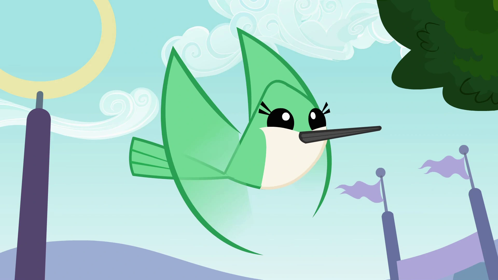 Tym razem zawodnicy mierzą się na specjalnym torze przeszkód. Motyl radzi sobie całkiem nieźle, flaming jest do niczego, wykonanie tukana "może być", nietoperz nie za bardzo sobie radzi, a zachowanie żółwia jest odwrotnością zwinności. Natomiast koliber błyskawicznie i w świetnym stylu pokonuje tor przeszkód, więc Rainbow postanawia zaszczycić go przybiciem swojego kopytka z jego skrzydełkiem, jednak siła lekkiego skądinąd uderzenia sprawiła, że mały ptaszek spadł na ziemię, za co stracił jeden punkt. Wyniki: