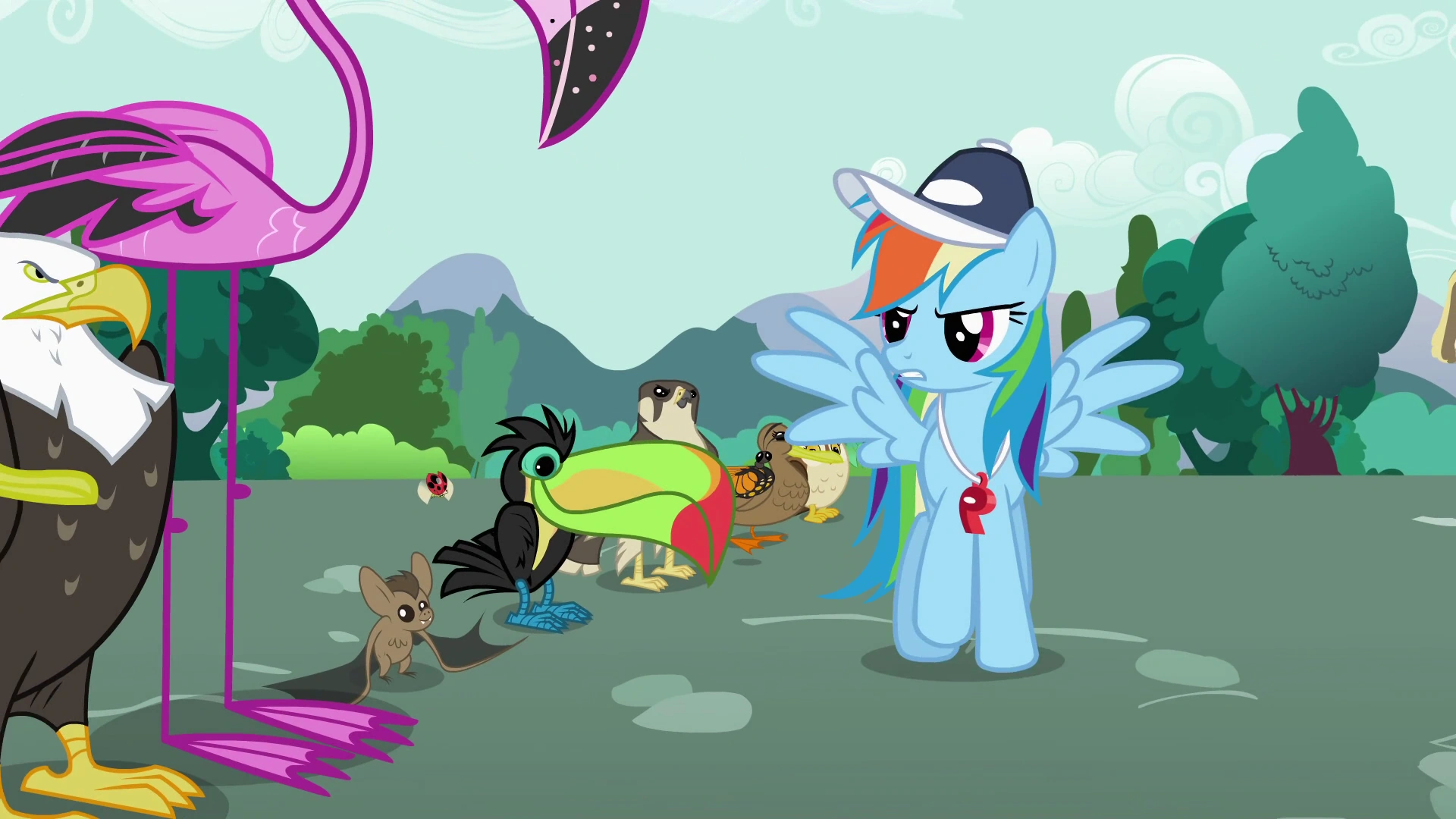 Na początek Rainbow Dash ustawia kandydatów na pupila w szeregu i instruuje zwierzęta jak oficer w wojsku. Mówi im, że nie każde z nich może być jej zwierzakiem i jeśli mają wątpliwości na temat swoich talentów, to niech lepiej od razu zrezygnują, bo tylko twardziele przetrwają ostrą rywalizację. Następnie krzyczy na poszczególne zwierzęta, na przykład zmusza motyla do szybszego trzepotania. RD oczekuje od swojego przyszłego pupila pełnego poświęcenia.