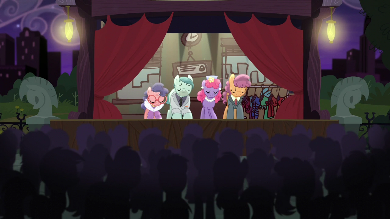 Przedstawienia jednak się odbyło. Kiedy odgrywano przedstawienie o powstaniu, coraz więcej kucyków jak zaczęło je oglądać. Przedstawienia okazało się bardzo dobre i wszyscy przypomnieli sobie o poczuciu wspólnoty, jakie dawał Teatr Letniego Przesilenia i postanowili, że odbudują stary Teatr i zrekonstruują park.