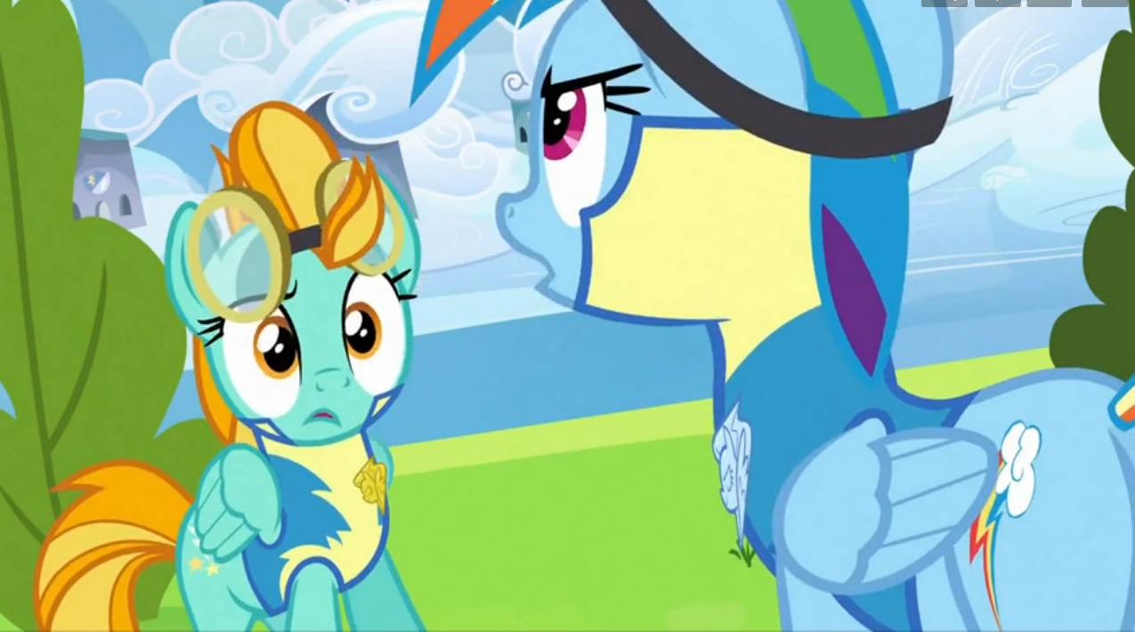 Gdy tylko Spitfire znika, Rainbow prosi Lightning, by następnym razem przystopowały z tą szybkością, ponieważ dziś staranowały innych kadetów. Lightning Dust się tym jednak nie przejęła i z pewnością mówi do Rainbow: