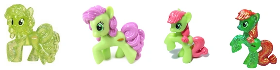 Peachy Sweet pojawiła się w czterech seriach blind bag'ów. W czwartej serii jako zielona, brokatowa figurka o designie Pinkie Pie, w szóstej serii jako zwykła figurka mająca jasnoróżową grzywę i design Pinkie Pie, w dziewiątej serii już jako figurka o grzywie o tym samym kolorze co serialowa Peachy Sweet i o designie Applejack oraz w dziesiątej serii jako brokatowa figurka o designie Applejack.