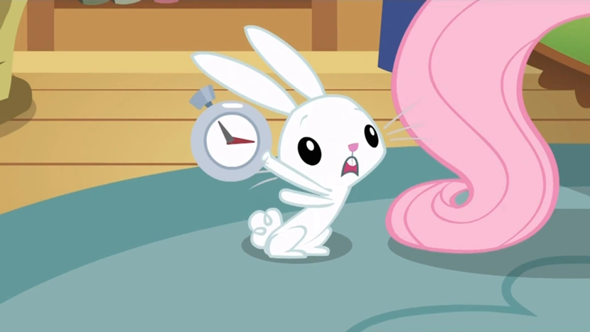 Na początku odcinka widać Fluttershy, która właśnie pomogła kontuzjowanej myszce. Po chwili do pegaza przybiega zdenerwowany Angel, trzymający zegarek. Króliczek bardzo chce coś powiedzieć swojej opiekunce. Fluttershy zastanawia się, o co mu chodzi, gdy nagle zdaje sobie sprawę, że jest spóźniona na przyjęcie z Księżniczką Celestią, o czym właśnie chciał ją poinformować królik. Kucyk czym prędzej wybiega z domu, lecz po chwili wraca, by podziękować pupilowi. Robi to kilkakrotnie, aż zniecierpliwiony Angel zamyka i blokuje drzwi tak, że Fluttershy nie ma wstępu do domu.