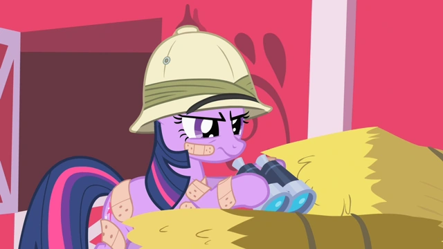 Scena później pokazuje jak Twilight, cała w plastrach znów obserwuje Pinkie Pie, tym razem przy farmie Sweet Apple. Jednorożec dyktuje, co się dzieje z obserwowaną. W tej samej chwili różowo włosa dostała nowy tik: klapnięcie uszu, mruganie powiekami i szczypanie w kolanach. Spike ze strachem stwierdza, że to oznaczało wypadek z drzwiami. Twilight śmieje się z tego i podchodzi pod drzwi stodoły, aby pokazać, że to nieprawda, lecz gdy kucyk odchodzi, otwierają się drzwi spod ziemi. Jednorożec wpada tam, obijając się o schody. Słychać głos Applejack, najwyraźniej niewidzącą, lub nieświadomą tego, co się stało. Pyta się jej czy przyszła odwiedzić ich stodołę.