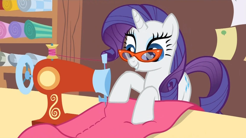 Rarity jako źrebak, próbuje szyć ubrania