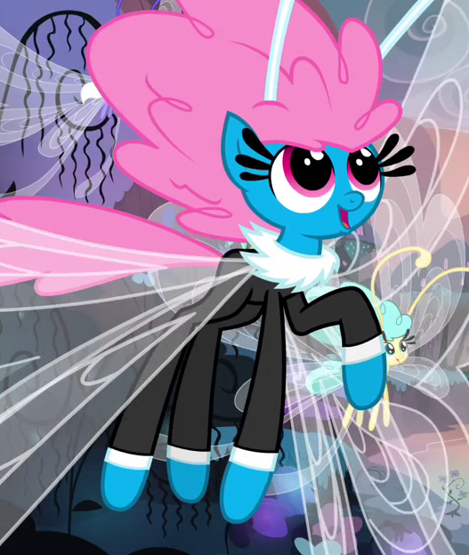 Seabreeze ma ciemnoniebieskie umaszczenie, kręcone, różowe włosy i oczy tego samego koloru. Jego czułki są białe. Nosi czarny strój z białym kołnierzykiem i rękawami.
