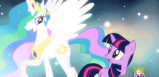 Twilight przypomina sobie o zaklęciu i główne bohaterki udają się do biblioteki. Twilight zapisuje w księdze Star Swirla Brodatego swoje zaklęcie i nagle z naszyjników wydobywają się promienie, które celują w Twilight. Po chwili znika i pojawia się w pewnej przestrzeni z gwiazdami. Spotyka tam Księżniczkę Celestię, która rozmawia z nią i śpiewa piosenkę o dotychczasowych dokonaniach Twilight. Po chwili kucyk przedostaje się na dawne miejsce. Okazuje się, że otrzymała skrzydła i w ten sposób została alikornem. Celestia oznajmia, że Twilight stała się Księżniczką, bo wypełniła swoje przeznaczenie i napisała własne zaklęcie.
