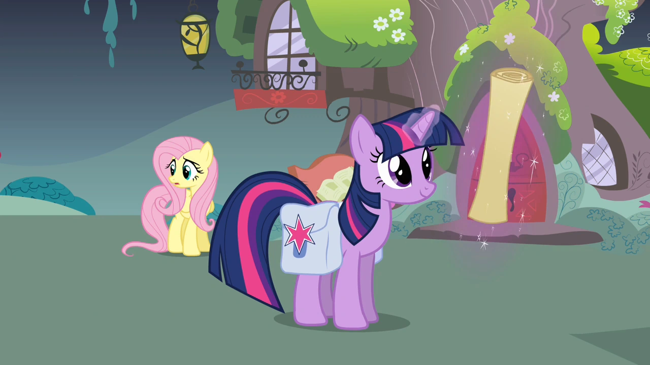 Twilight, zamykając swoje torby, mówi, że każda z nich teraz musi się przygotować do drogi w ciągu godziny. Kończąc spotkanie, przyjaciółki motywują się do wyznaczonej misji, po czym wychodzą z biblioteki. Jedynie Fluttershy niepewna decyzji przyjaciółek stoi przed wyjściem z domu Twilight, mówiąc, "Ech, no nie wiem...".
