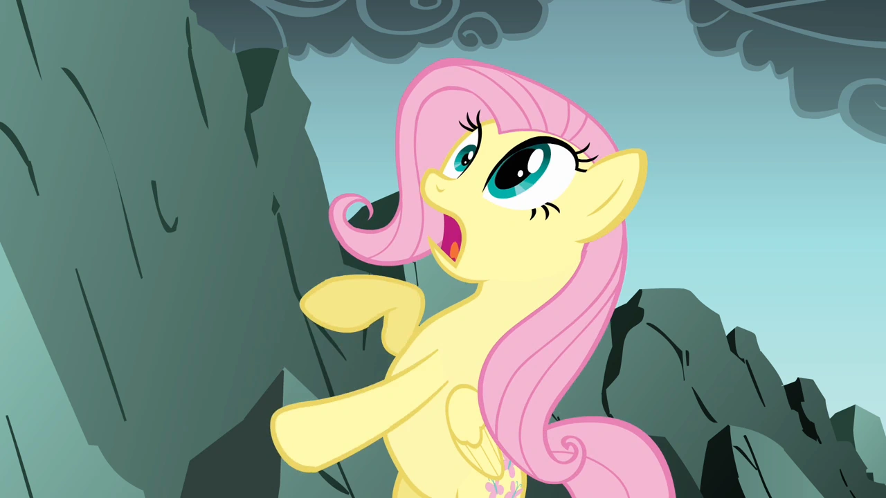 Uderzenie było na tyle silne, że skała zaczyna się powoli pękać. Nagle kamień rozłamuje się na kilka małych części i okazuje się, iż Fluttershy cały czas ukrywa się za nim. Wtem pegaz z przerażeniem patrząc za sparaliżowane swoje przyjaciółki, decyduje się je uratować. Nagle Fluttershy zaczyna krzyczeć na smoka. Następnie bohaterka wzlatuje w powietrze, po czym ląduje na jego nosie. Tam Fluttershy wrzeszczy na niego, wypominając mu jego naganne zachowaniem względem kucyków. Jednak stwór próbuje wytłumaczyć swoje zachowanie, kopnięciem Rainbow Dash.