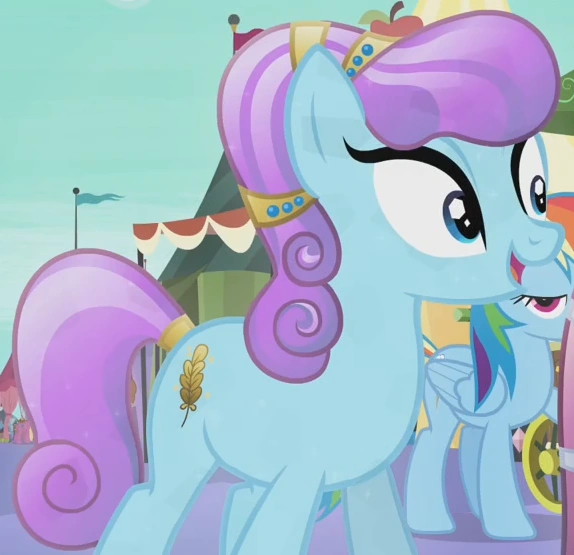 É uma pônei de couro celeste cristalino com a crina e cola penteadas e da cor violeta escura e manchas da mesma cor só que mais claro prendidas com broches dourados com safiras na crina e olhos da cor azul clara. Sua marca é de um galho de trigo dourado.
