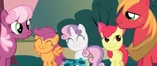 - Sweetie Belle: [respira fundo] Não vamos nos empolgar demais. Temos um salão cheio de amigos esperando pra nos encher de elogios. Sejam atenciosas.
