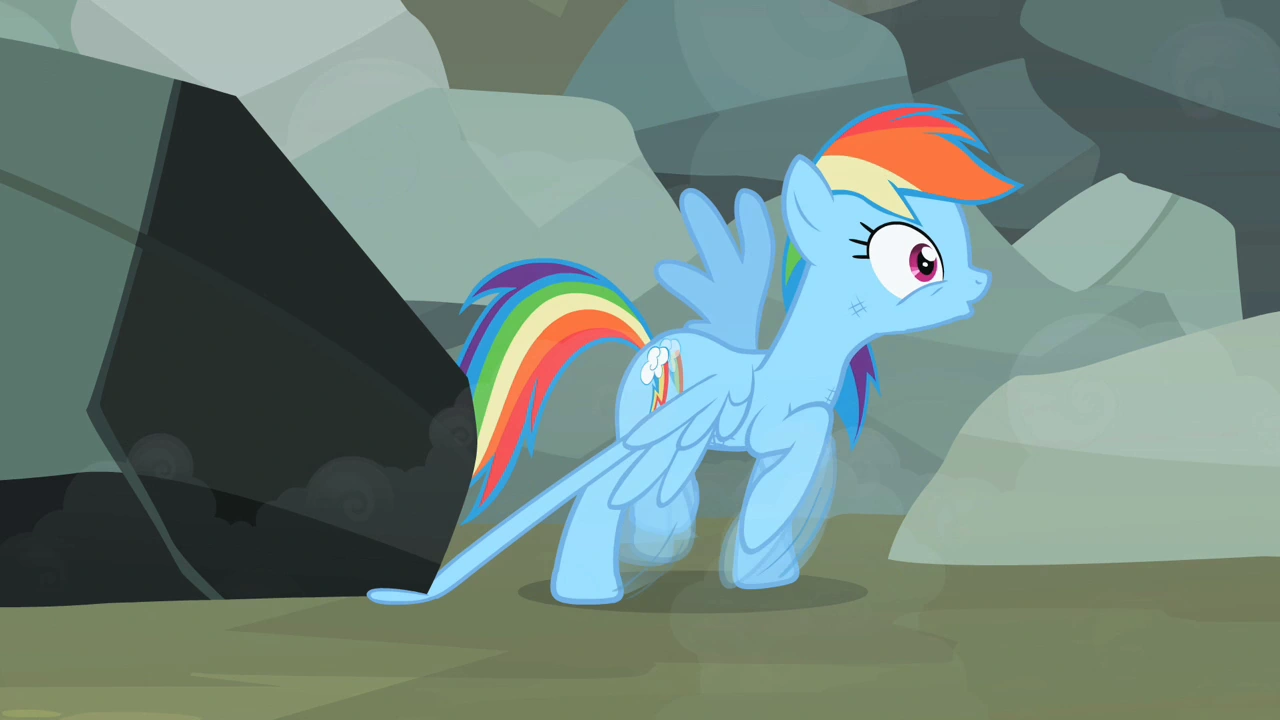 A tartaruga coloca a cabeça embaixo da rocha que está prendendo a Rainbow e ela, ao ver aquilo, diz que está perdida e volta a chorar, porém a tartaruga começa a erguer a rocha e Rainbow olha surpresa.