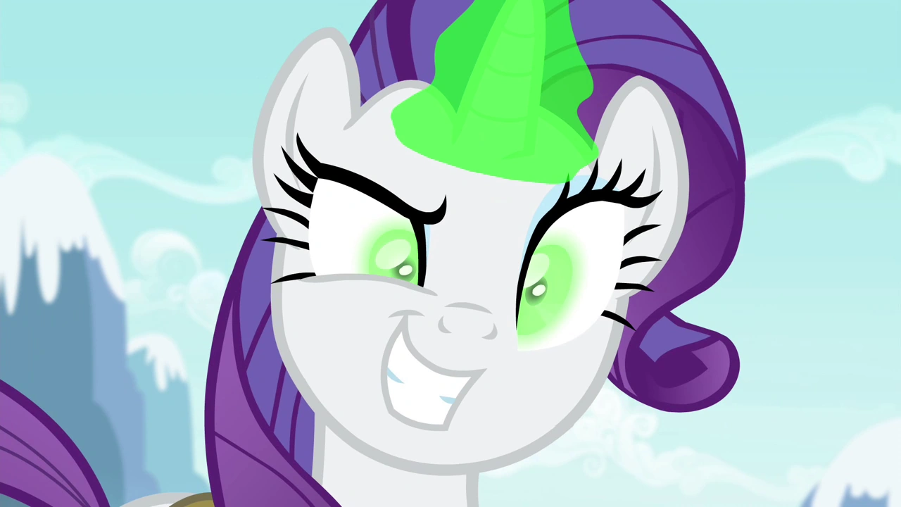 Rarity: Mas, espera… parece que eu não preciso mais dele, não é? É isso… é isso…! Estou sentindo a mágica fluindo dentro de mim agora! Tô tão emocionada, eu tô tão emocionada!