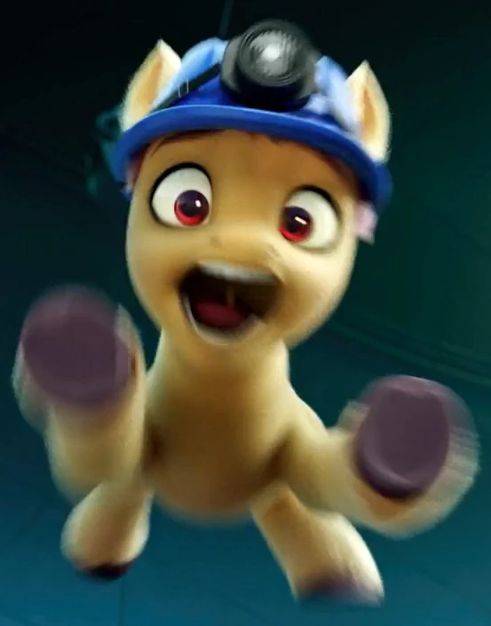 Глиттер — светло-жёлтый земной пони с серыми копытами. Его грива и хвост цвета пыльной розы. У него ярко-красные глаза. Он носит синюю каску рабочего.