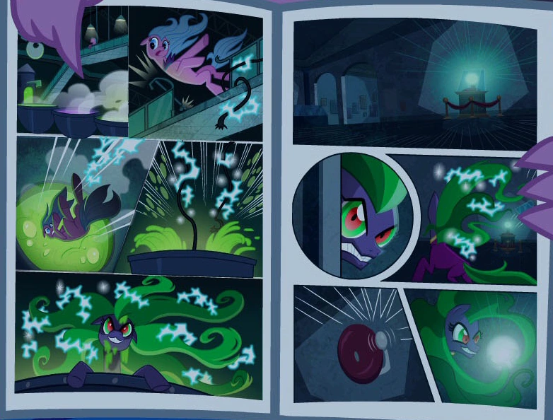Когда Спайк и его друзья всасываются в комикс и становятся командой Суперпони, Мэйн-як как раз похищает Энерго-сферу из музея. Злодейка высмеивает своих неумелых противниц и удаляется.