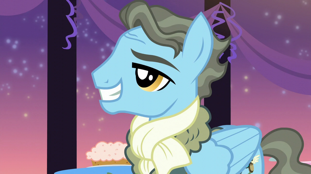 В этот вечер, за ужином во дворце, Рарити с Радугой встречают ветерана Чудо-молний, который уже на пенсии — Уинд Райдера. Рарити делает упор на его особом запахе одеколона, ну а Радуга страх как рада познакомиться с таким выдающимся летуном. Как только подходит Спитфайр и хвалит полёты Радуги, причём до такой степени, что та могла бы побить когда-нибудь рекорд Уинд Райдера по скорости дальних полётов, последний неожиданно уходит.