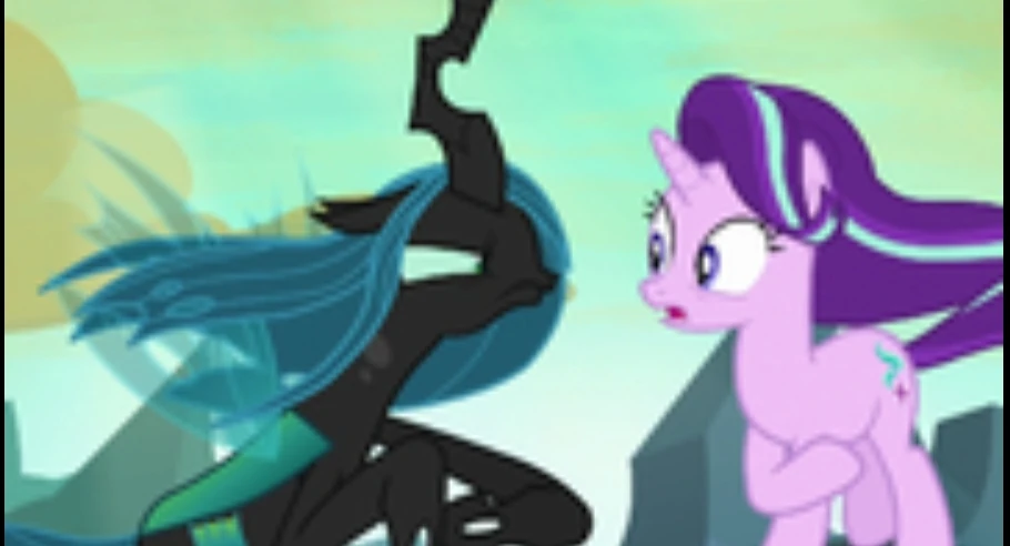 เข้ามาในฝันได้ ได้มาเตือนสตาร์ไลท์ในฝันว่าพวกมันกลับมาแล้ว สตาไลท์ที่พึ่งตื่น ได้ไปปลุกทริกซี่ และมีทอแรกซ์มาพูดคุยด้วย(ทอแรกซ์นั้นเป็นเชนจ์ลิ่งตัวเดียวที่คิดว่าควรแบ่งปันความรักไม่ใช่ดูดมัน)ระหว่างทะเลาะกันอยู่ดิสคอร์ดก็มาร่วมแจมด้วย พอสตาร์ไลท์พูดว่าพวกเชนจ์ลิ่งได้จับตัวพวกองค์หญิง และ mane 6 รวมถึงฟลัทเทอร์ชาย ดิสคอร์ดที่มีความห่วงใยฟลัทเทอร์ชายมากได้พาทั้งหมดเทเลพอร์ตไปยัง รังเชนจ์ลิ่ง และพบว่าภายในนั้นไม่สามารถใช้เวทย์มนตร์ได้ แถมรังของพวกมันยังมีรูที่เปลี่ยนรูปร่างได้ ทำให้แทบจำทางไม่ได้ มีแค่เชนจ์ลิ่งเท่านั้นที่รู้ทางเท่านั้น ทั้ง 4 ได้หลอกล่อเชนจ์ลิ่งเพื่อไปยังห้องบัลลังก์จนเหลือแค่ 2 ตัว คือ สตาร์ไลท์และทอแรกซ์ ทอแรกซ์และสตาไลท์ถูกจับได้ สตาไลท์พยายามเกลี้ยกล่อม คริสซาลิส ว่าสิ่งที่ทอแรกซ์ทำมันถูกต้อง คริสซาลิสยังบอกอีกด้วยว่า เชนจ์ลิ่งนั้นหิวโหยความรักตลอดเวลา กินเท่าไหนก็ไม่อิ่ม คริสซาลิสไม่ฟังคำเทศนาของสตาร์ไลท์ และพยายามดูดกินความรักจากทอแรกซ์ สตาร์ไลท์บอกทอแรกซ์ว่าให้แบ่งปันความรักไปเลย ให้เธอรู้ว่านายมีความ