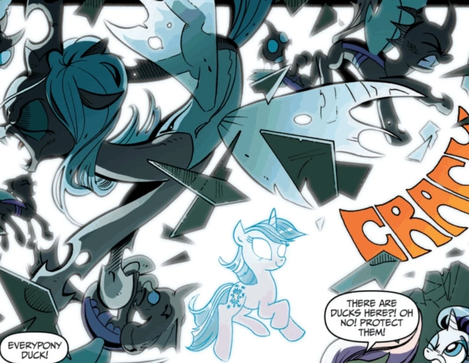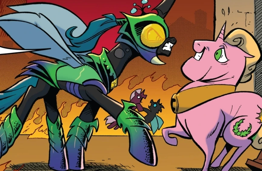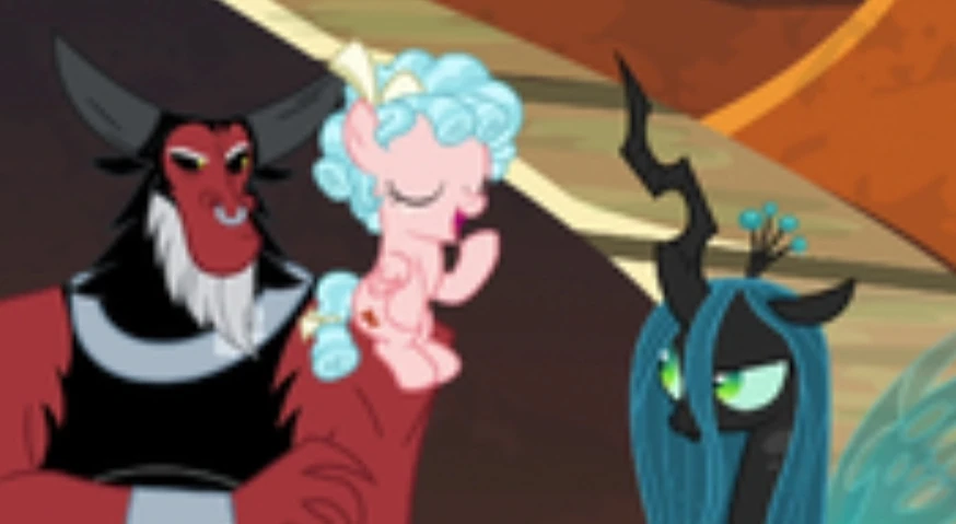 มันได้หลอกล่อให้ได้เข้าเมือง โดยการซ่อนในหุ่นไม้จักรพรรดิอินซิเททัสขนาดยักษ์ ที่กำลังขนส่งเข้าเมืองทรอท ทันทีที่หุ่นจักรพรรดิเข้าประตูเมือง ราชินีคริสซาลิสและกองทัพเชนจ์ลิ่งก็ได้ออกมาจากตัวรูปปั้นและดูดกินความรักจากโพนี่ทุกตัว โชคดีที่จักรพรรดิอินซิเททัสเรียก องค์หญิงเซเลสเทียและองค์หญิงลูน่าได้ทัน องค์หญิงเซเลสเทียได้ใช้พลังเนรเทศเหล่าเชนจ์ลิ่งไปยังภูเขาไฟที่ร้อนดั่งนรก พลังที่แข็งแกร่งขององค์หญิงเซเลสเทียทำให้เหล่าเชนจ์ลิ่งทั้งหมดมีรูตามร่างกายและปีก