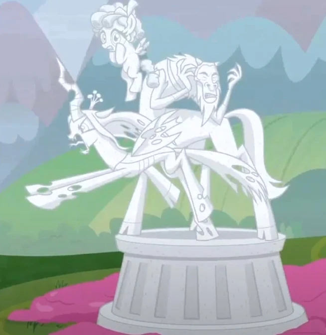 คริสซาลิส โคซี่โกลว และทิเรค ที่ถูกลงโทษให้เป็นรูปปั้น