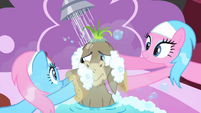 Tornado Bolt" manages to hug Dinky Doo and the rope at the same time.