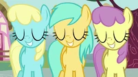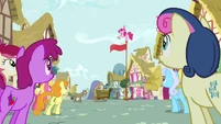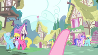 Pinkie Pie jumping rope with Scootaloo and fillies.