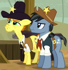 Some time during the episode, Silverstar beats the two deputies at a card game, and Applejack and Braeburn inform them that Trouble Shoes kidnapped the Cutie Mark Crusaders. Upon locating Trouble Shoes, Silverstar and the deputies place him under arrest and escort him to jail. The deputies are last seen when Trouble Shoes takes responsibility for his actions and accepts his punishment.