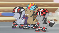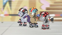 Lyra talking to Tornado Bolt, while Cherry Berry is in the background with Shoeshine.