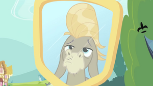 Pinkie Pie annoys Cranky by trying to guess his name. He eventually reveals his full name, Cranky Doodle Donkey, which sets Pinkie Pie into a song of the same name and has her calling him "Doodle." Angry, Cranky yells at Pinkie, "Nopony calls me Doodle!" Pinkie offers Cranky her friendship, which he refuses, telling Pinkie that he has made enough friends in his life and that he came to Ponyville to settle down and live in peace.