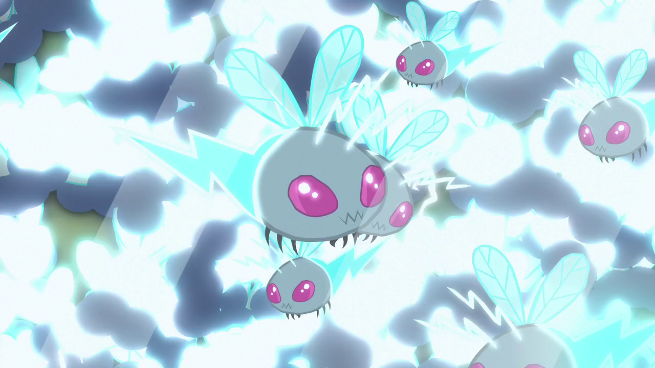 - Beyond Equestria: Fluttershy Balances the Scales features a purple pelican, messenger birds native to Mount Aris; Beezlebugs, aquatic seaweed-harvesting insects that live in Seaquestria; oogle worms, black leech-like worms that cling to other lifeforms; and glitterfish.