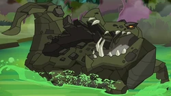 The bugbear was captured and imprisoned in Tartarus some time ago by Sweetie Drops, a member of a secret anti-monster agency in Canterlot. After it escaped, the agency was disbanded, and Sweetie Drops went into hiding under the assumed name "Bon Bon". When the bugbear attacks Ponyville, the Mane Six spend the episode fighting it off, eventually defeating it off-screen.