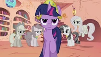 A pillow on Twilight Sparkle's head