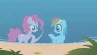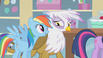 Gilda and Rainbow Dash leave Pinkie Pie behind.