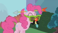 Gilda's a real bonehead to fall for Pinkie's hoof-buzzer prank
