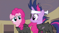 How is Pinkie able to keep her puffy mane contained in that outfit Hm?