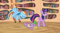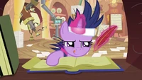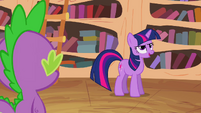 Twilight thinks this is first sign of the future, while Spike thinks it's just a normal papercut.