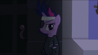 "Why isn't anypony surprised to see me sneaking around in here?"