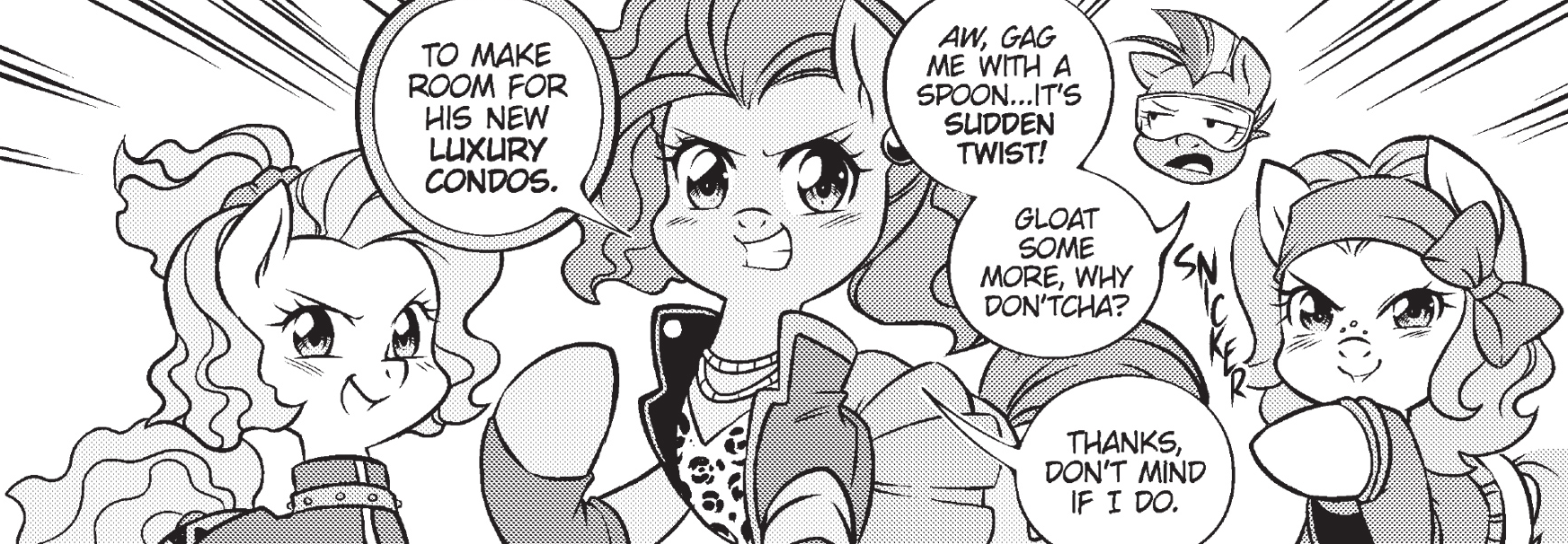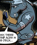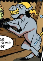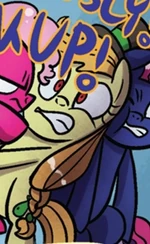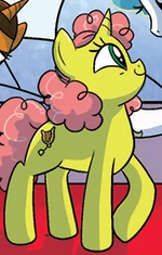 Appears during the scavenger hunt in My Little Pony: Friends Forever Issue #16. Resembles Curly Howard of the Three Stooges. |