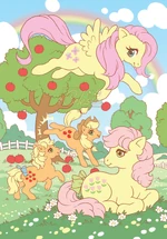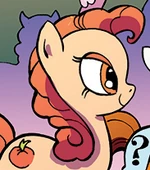 Appears during the scavenger hunt in My Little Pony: Friends Forever Issue #16. Resembles Buttercup of the Powerpuff Girls, who is named the same as Buttercup, as a nickname for Pear Butter, as a G2 Earth pony, and as a G1 cow. |