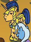 An alternate universe counterpart of Shining Armor. He is a pair of characters named "Mirror-Universe Shining Armor" and "Hipster-Universe Shining Armor" in Gameloft’s mobile game, in which his cutie mark is a shield split by a crack. Mirror-Universe Shining Armor's bio states "He probably doesn’t even WEAR armor—and if he did it wouldn’t be the SLIGHTEST bit reflective!" Hipster-Universe Shining Armor's bio states "Still from the Mirror Universe... just a LOT more fashionable about it." |