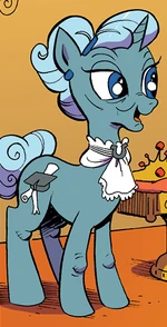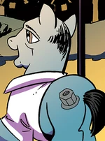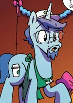 Appears during the scavenger hunt in My Little Pony: Friends Forever Issue #16. Resembles Moe Howard of the Three Stooges. |