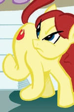 A Crystal Pony who was one of Sombra's classmates when he was a colt. Her cutie mark is a yellow star with pink hearts around it. |
