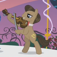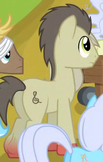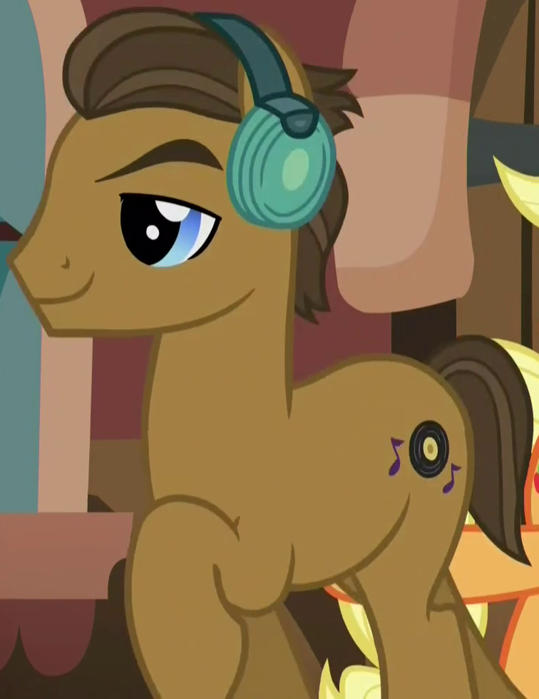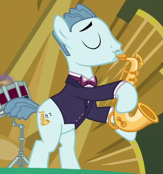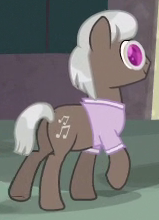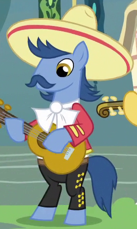 Appears in flashback in The Perfect Pear. Shares his design and accessory design with Apple Cinnamon and "Adante" and his color scheme nearly with "High Roller" and "End Zone". His cutie mark is a guitar and three black double quavers. |