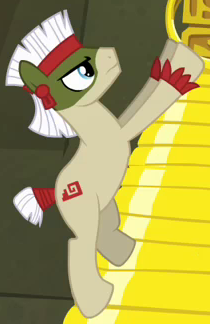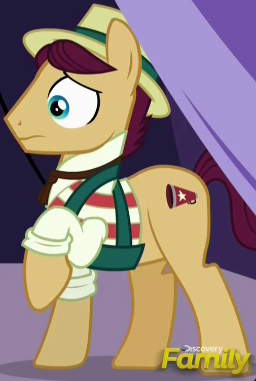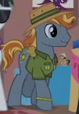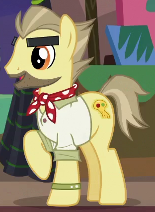 Appears in Daring Done? as a resident of Somnambula. Also appears in Road to Friendship and A Rockhoof and a Hard Place. He is a character named "Outdoorsy Somnambulan" in Gameloft's mobile game. His bio states, "This pony prefers earth tones--the better to blend in with the surrounding desert when he's out exploring." |