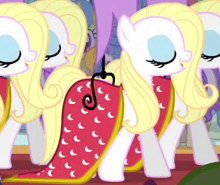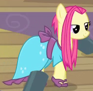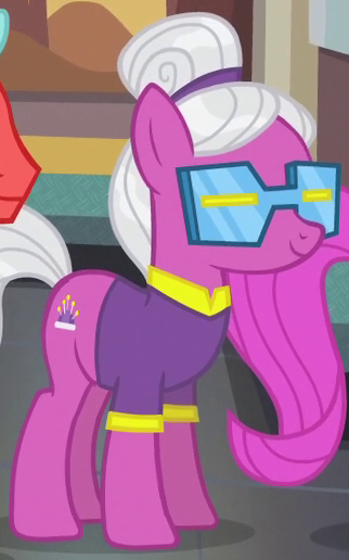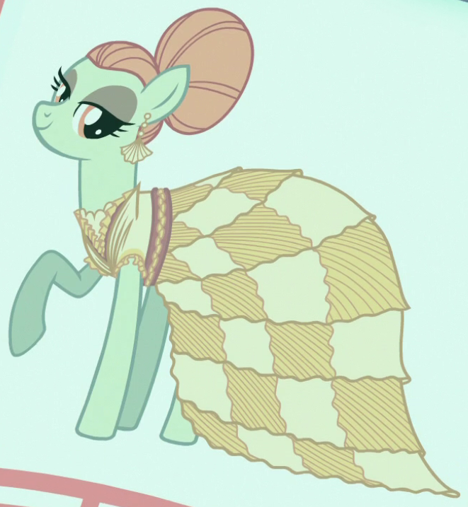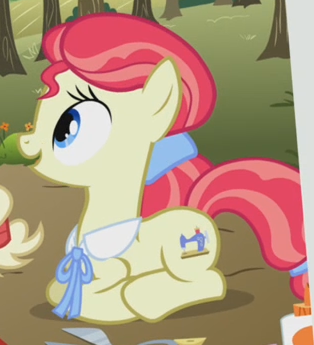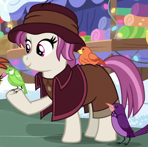 A Bridleway costume designer and founder of the Midsummer Theatre Revival in Made in Manehattan. Her cutie mark is a heart-shaped pincushion. She is a character in Gameloft's mobile game. The game's description of her states, "Watch as she whips up her costumes with flair, restoring the theater so that art can be shared." |