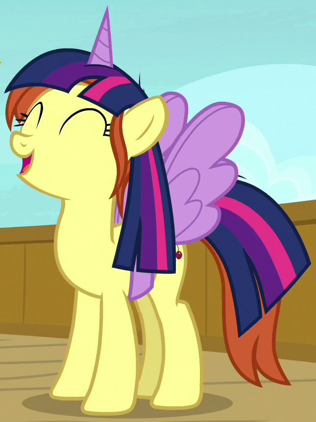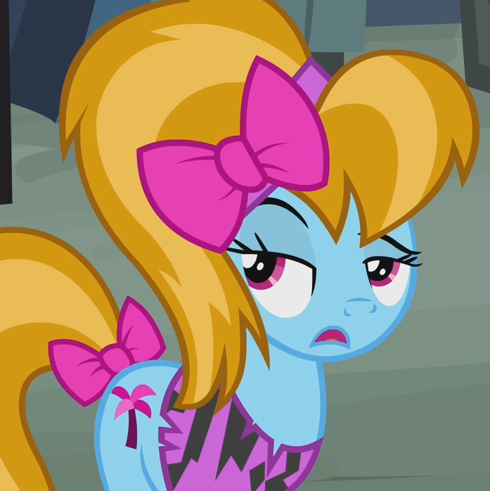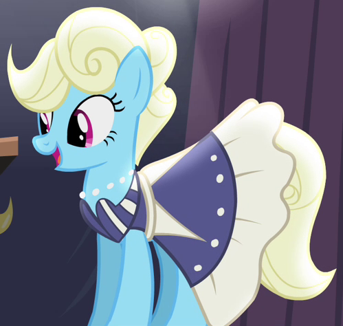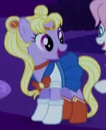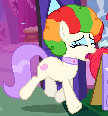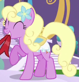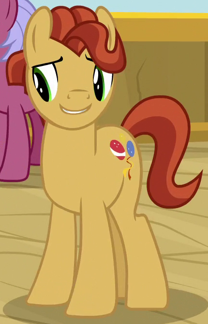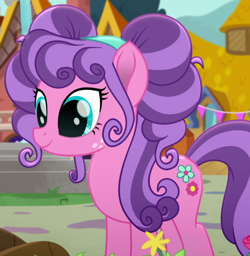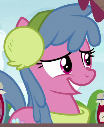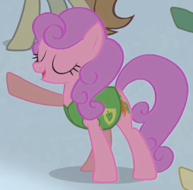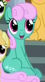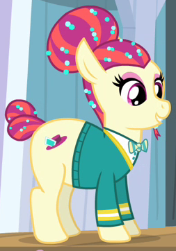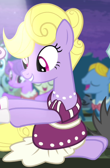A student/cheerleader at the School of Friendship in 2, 4, 6, Greaaat. She is a character in Gameloft's mobile game. Her bio states "One of the School of Friendship Cheer Team's two lead dancers. Like...TOTALLY stoked for this." Her cutie mark is a gust of wind and two pompoms. Voiced by Diana Kaarina. Shares her name with Twist's mother in the original version of Smile Song. |